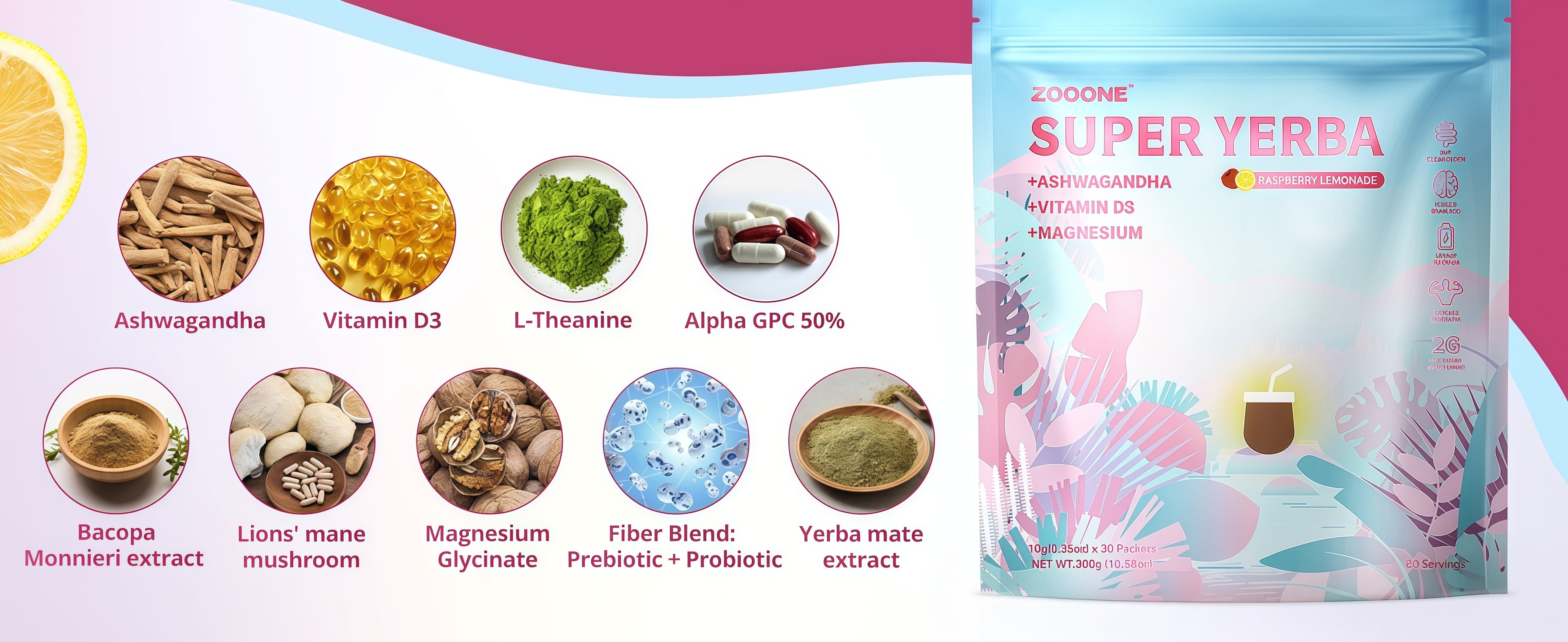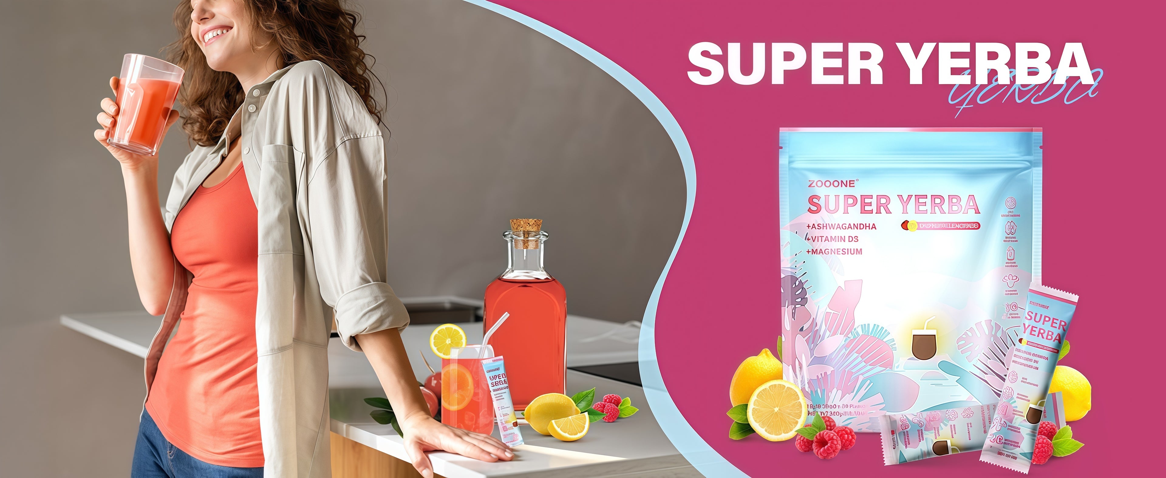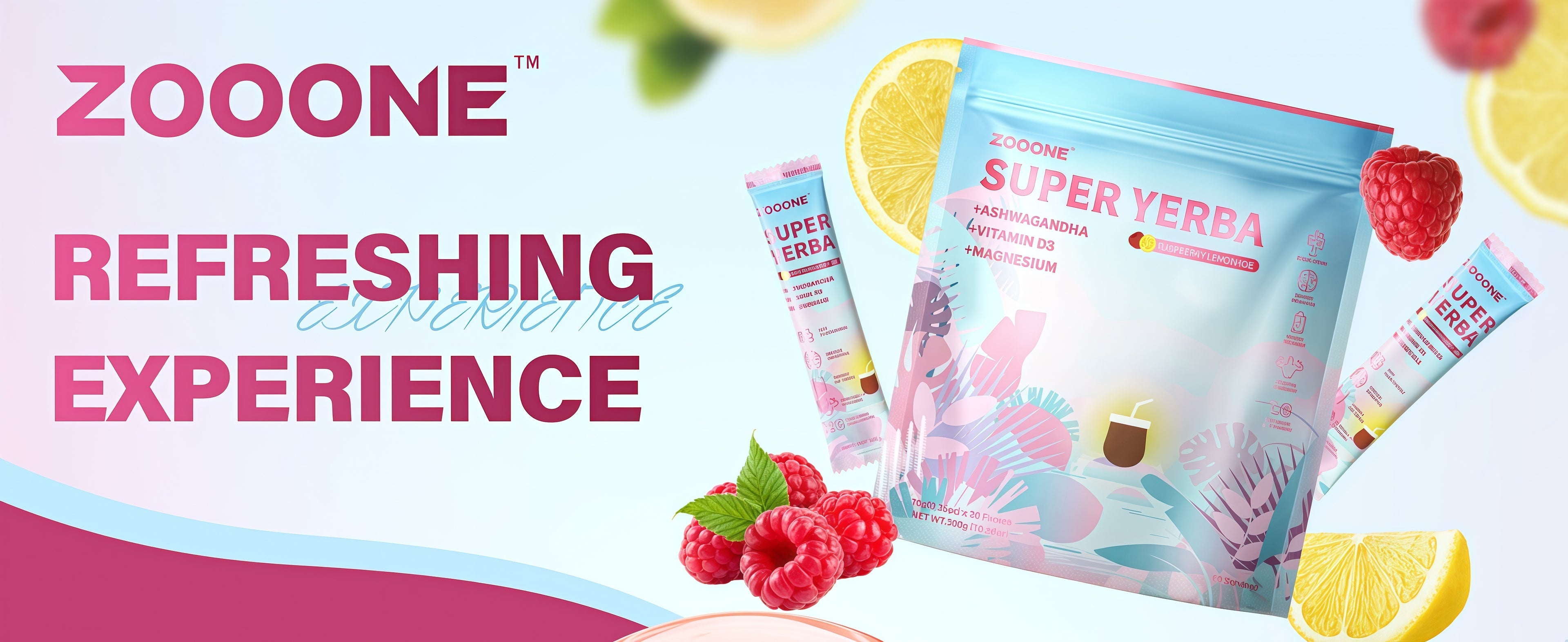 Elevate your day with ZOOONE-Super Yerba, the delicious instant drink powder that provides sustained energy and focus without the jitters or crash of coffee. Our refreshing Raspberry Lemonade flavor is a perfect blend of sweet and tart, and it dissolves smoothly in water with no gritty texture, making it a habit you'll truly enjoy.